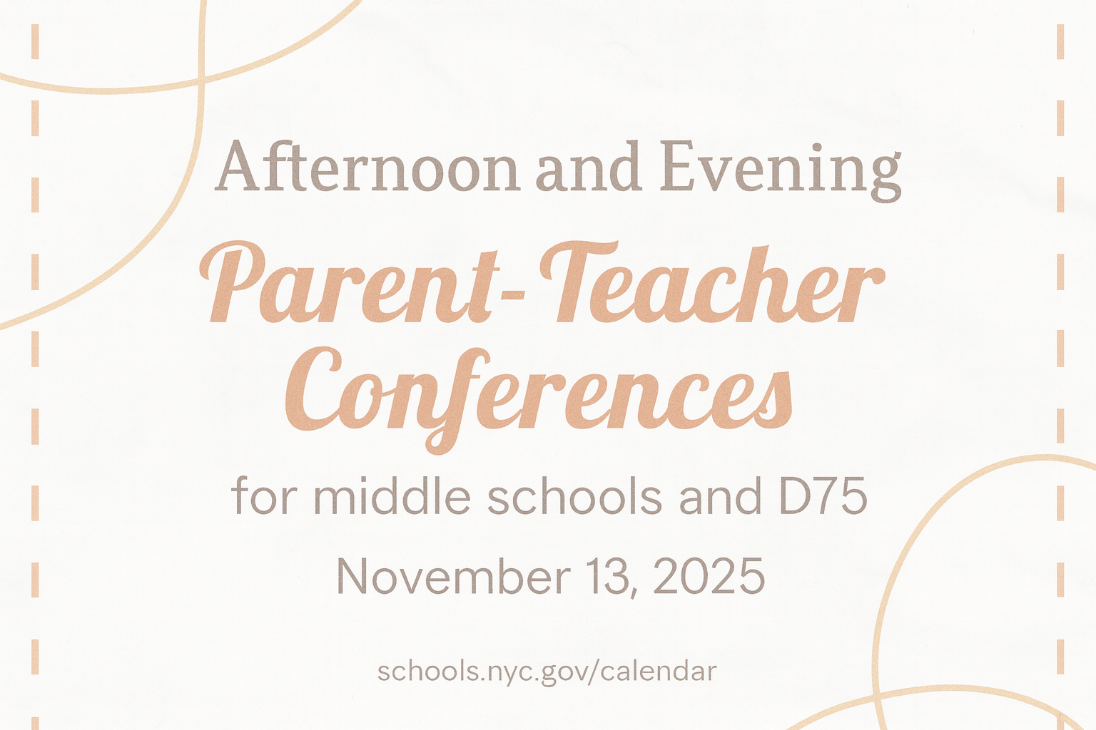 Afternoon and Evening Parent-Teacher Conferences for middle schools and D75; students in these schools dismissed three hours early